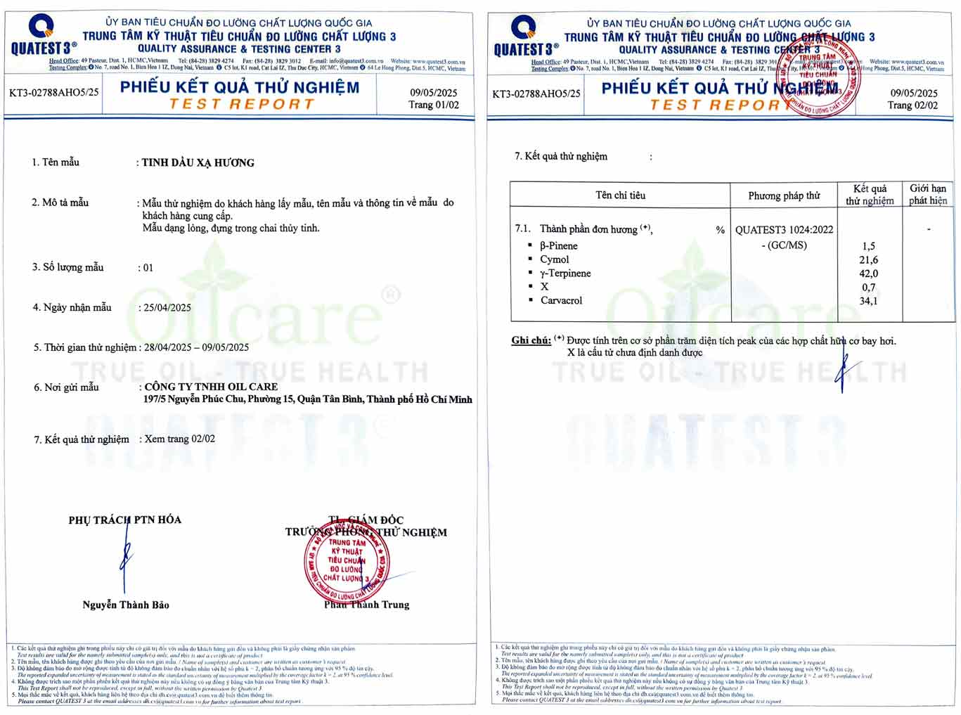 Xem bảng kiểm nghiệm thành phần của tinh dầu xạ hương do QUATEST 3 (Trung tâm Kỹ thuật Tiêu chuẩn Đo lường Chất lượng 3)